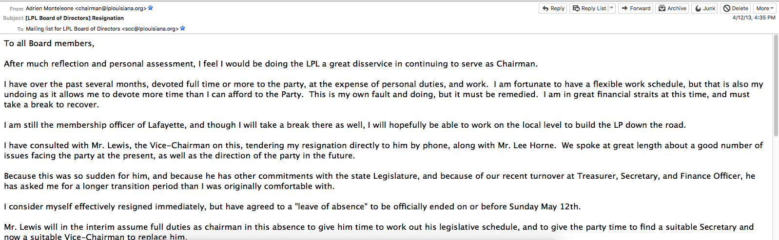 > major role later in this email. I had been elected to the LPL board at a